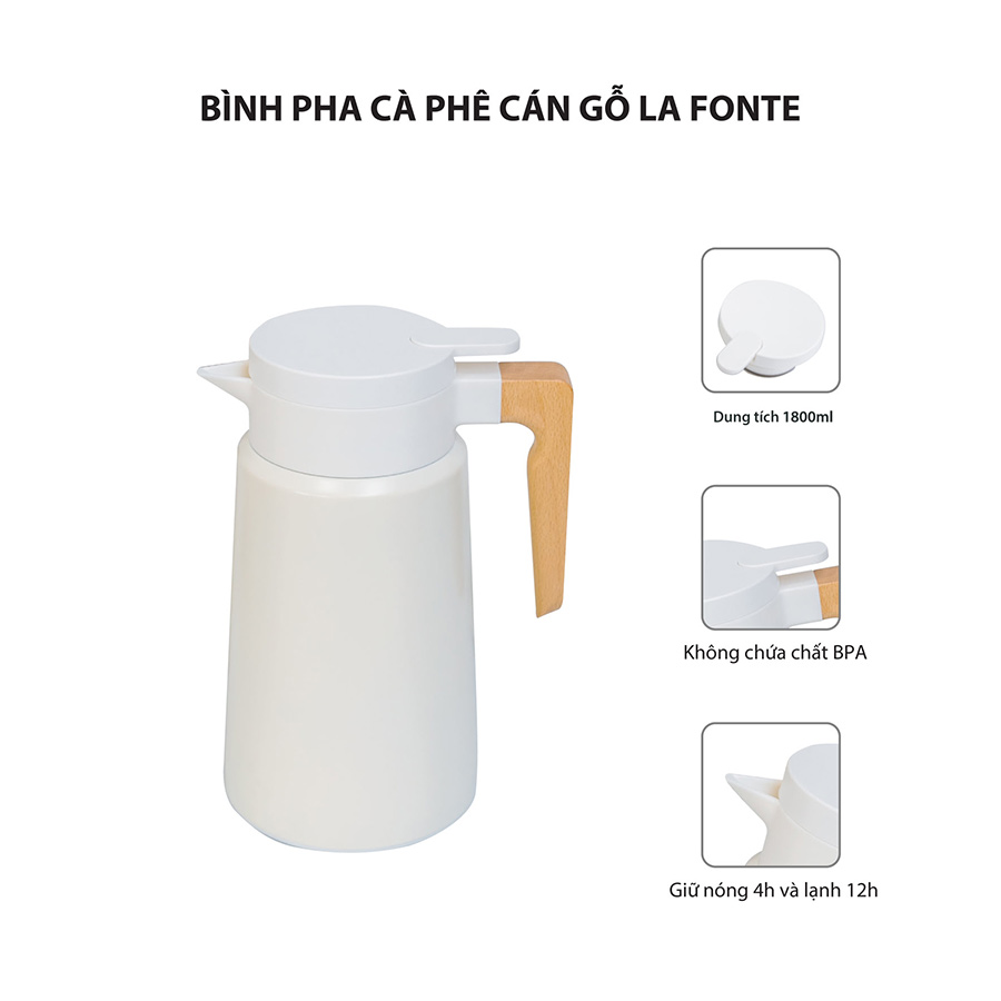 • Bình pha cà phê cán gỗ La Fonte là món đồ dùng nhà bếp cần thiết dành cho các tín đồ cà phê. Bình có chất liệu toàn thân làm bằng inox 304 chất lượng cao, mang lại sự thanh lịch trong kiểu dáng và thiết kế.
