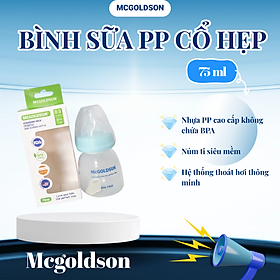 Nguyên liệu PP được các tổ chức quốc tế công nhận là loại nhựa an toàn " McGOLDSON" là bình sữa được thiết kế kiểu dáng đẹp mắt, dễ cầm, nằm khó rơi, mang lại sự thoải mái khi bé bú sữa.