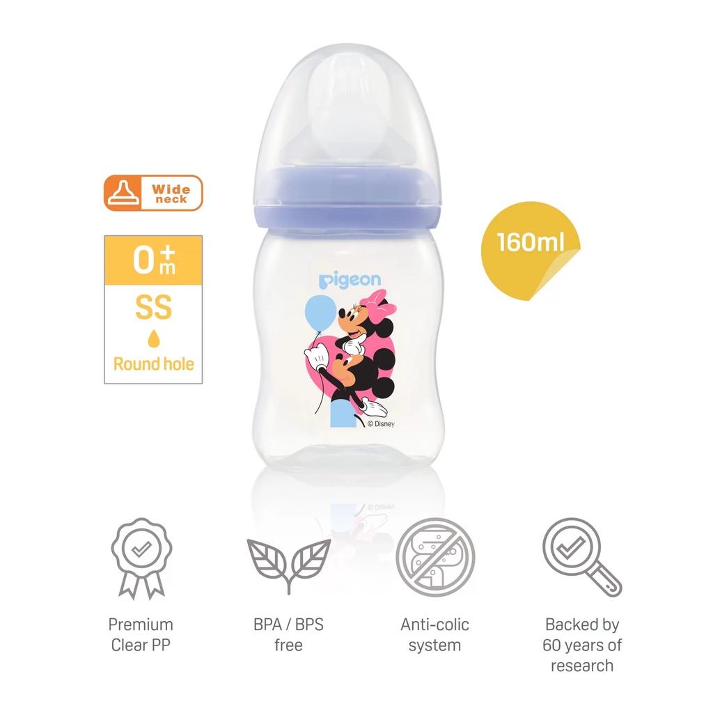 - Bình sữa Pigeon PP Plus Disney được làm từ chất liệu nhựa PP cao cấp, an toàn, đi đầu trong việc mang đến cho bé trải nghiệm thật như bú mẹ thông qua núm ty mô phỏng bầu ti mẹ, giúp bé chuyển từ bú mẹ sang bú bình dễ dàng hơn.