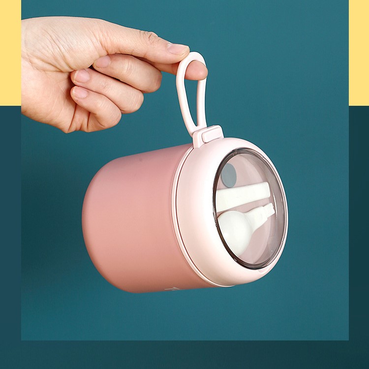 - Nắp được trang bị thêm quai xách bạn có thể dễ dàng treo cốc để mang đi