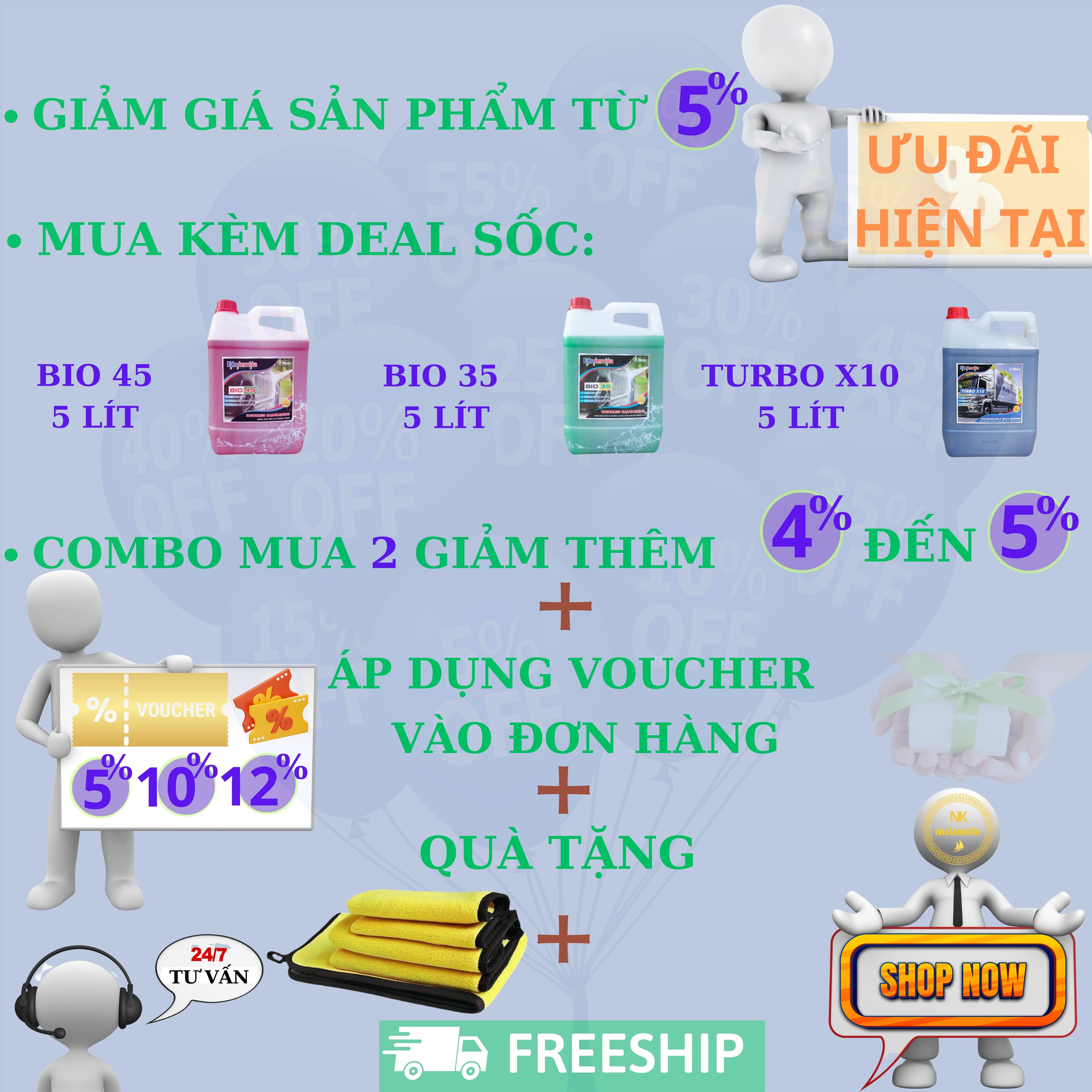Dung dịch rửa xe không chạm - Nước rửa xe bọt tuyết Bio 45Là dung dịch siêu tập trung dạng bọt dùng để rửa xe các loai xe, có độ đậm đặc cao, thích hợp với mội trường và khí hậu Việt Nam, có thể loại ...