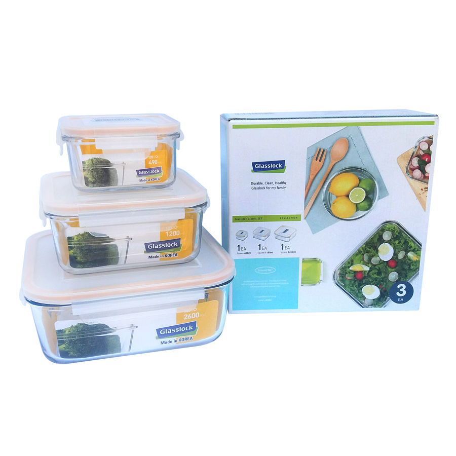 _x000D_ - Bộ 3 Hộp Thủy Tinh Hình Chữ Nhật Glasslock GL135 (400 + 1000 + 2000 ml) được sản xuất hoàn toàn từ những nguyên liệu tự nhiên. _x000D_ - Sản phẩm có thể
