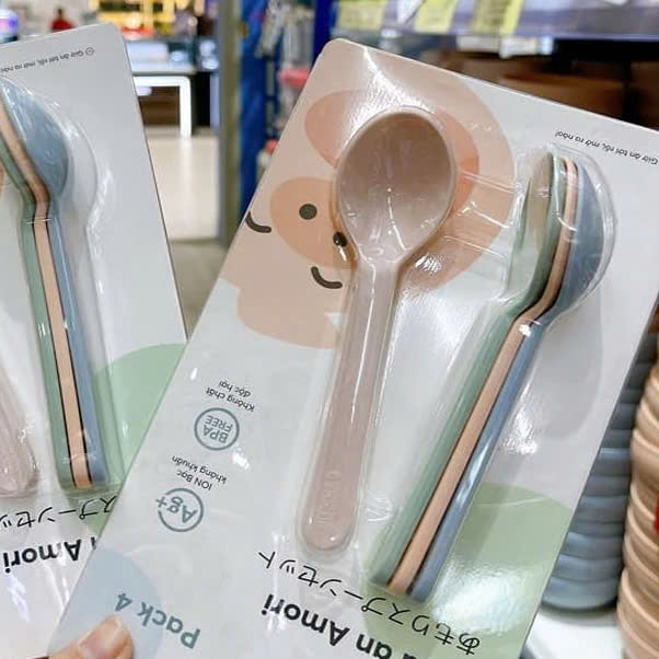 Bộ 04 thìa ăn Inochi Amori, thìa nhựa PP nguyên sinh, không BPA an toàn cho sức khỏe - Hàng chính hãng inochi ( Tặng kèm khăn lau tay pakasa)
