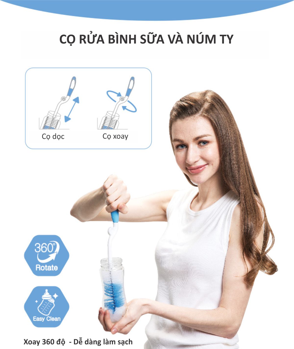 Giới thiệu Cây súc rửa bình sữa và núm vú Pigeon với tay xoay hai chiều/một chiều là một sản phẩm tiện lợi và hiệu quả để làm sạch các bình sữa và núm vú