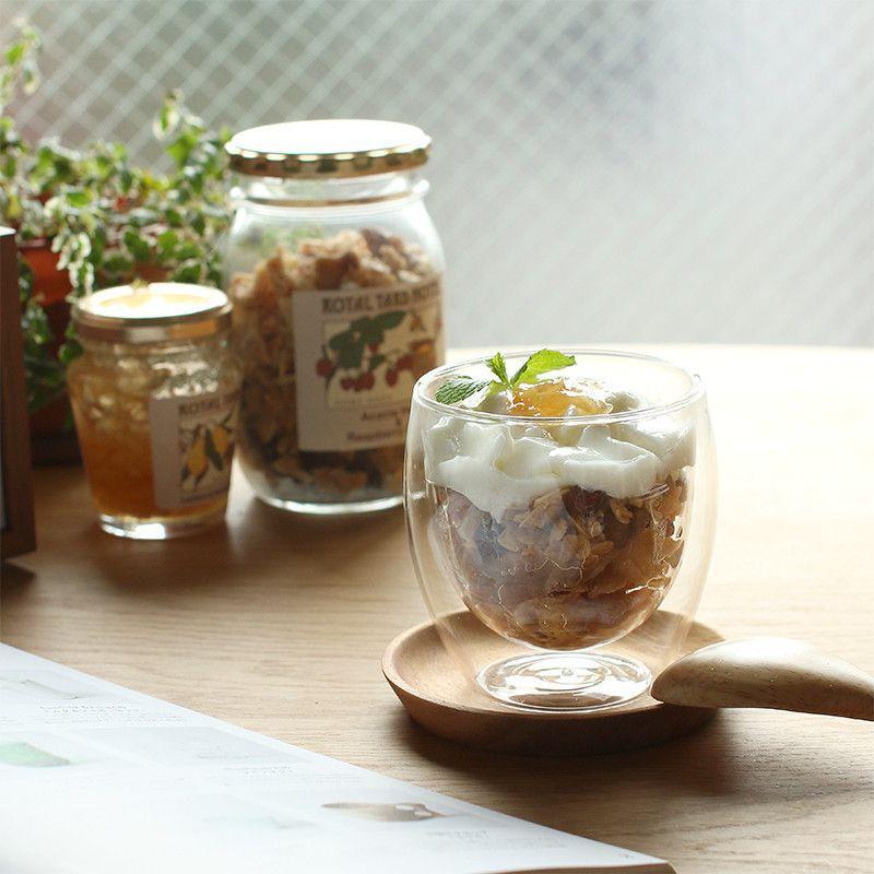 Cốc thủy tinh 2 lớp cách nhiệt có tay cầm tiện dụng dung tích 350ml