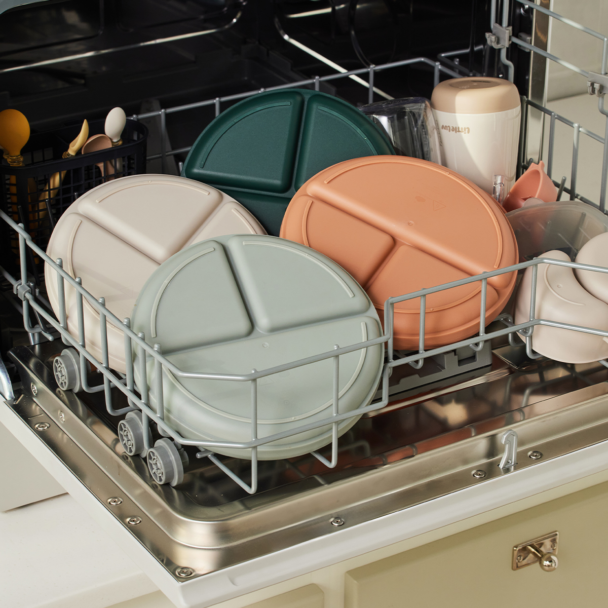 - Dĩa có thiết kế 3 ngăn: Chiếc dĩa với thiết kế 3 ngăn này là một vật dụng thiết yếu cho các bậc phụ huynh! Nó rất tiện dụng và có thể sử dụng cho nhiều loại thực phẩm, từ đồ ăn vặt đến cơm và các món ăn kèm.