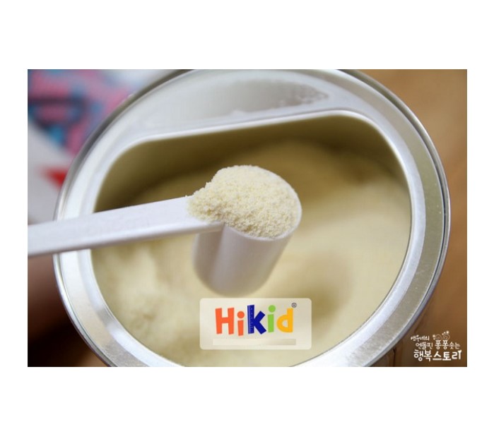 - Lưu ý: Với một số nhận xét của các mẹ khi mua Sữa Hikid, sữa Hikid là sữa công thức đặc thù dành riêng cho những bé muốn phát triển chiều cao tối ưu nên sữa có bổ sung vi chất, khi mở hộp hoặc khi pha sữa, mẹ có thể thấy những hạt màu xanh (có thể tan hoặc không tan), điều này là hết sức bình thường & không ảnh hưởng tới chất lượng sữa. Nên cho bé uống ngay sau khi pha. Mẹ tham khảo thêm về bảng dinh dưỡng của sữa nhé! Bảng thành phần dinh dưỡng chi tiết sữa Hikid Hàn Quốc: Nhóm Thành phần dinh dưỡng Hàm lượng chứa trong 100g Nhóm Thành phần dinh dưỡng Hàm lượng chứa trong 100g Calo Protein (g) 15(50%) Các nhân tố tăng trưởng TGF-β(㎍) 1.9 Chất béo (g) 21 IGF-1(㎍) 3.2 Cácbohyđrát (g) 57 IGF-2(㎍) 0.8 Calo (kcal) 480(30%) L-arginine (㎎) 630 Vitamin Vitamin A(IU) 1700(128%) L-cystine(㎎) 183.8 Vitamin D(IU) 280(70%) L-cacnitin (㎎) 7 Vitamin E(㎎) 7.5(125%) Thành phần hỗ trợ phát triển trí não Taurine (㎎) 30 Vitamin K1(㎍) 22.5 Choline (㎎) 37 Vitamin B1(㎎) 1.3(163%) Axit Linoleic (㎎) 3000 Vitamin B2(㎎) 1.0(100%) Axit α-linoleic (㎎) 303.75 Vitamin B6(㎎) 1.3(217%) Phosphatidylcholine 112.5 Vitamin B12(㎍) 4.0 Phosphatidyl ethanolamine(㎎) 86.3 Vitamin C(㎎) 65(130%) Sphingomyelin(㎎) 11.3 Khoáng chất Nicotinic acid amide (㎎) 10(91%) Lexithin(㎎) 300 Biotin(㎍) 160 DHA(㎎) 45 Axit Pantothenic(㎎) 6.0 Axit Sialic (㎎) 63.8 Axit Folic(㎍) 250(250%) Các thành phần miễn dịch Axit β-linoleic (㎎) 11.3 Canxi(㎎) 600(100%) Nucleotit (㎎) 7.5 Phốtpho (㎎) 400(67%) Lactoferrin (㎎) 30 Natri(㎎) 230 Immunoglobulin(IgG) (㎎) 90 Kali(㎎) 650 Selen (㎍) 2.625 Magiê (㎎) 100 β-caroten (㎍) 80 Clo (㎎) 500 Glutathione(㎎) 1.5 Sắt (㎎) 9.0(100%) Lactulozo (㎎) 225 Kẽm (㎎) 8.0(100%) Galactosyl-lactozo (㎎) 150 Đồng (㎍) 300 Galacto-oligosaccharides 375 I-ốt (㎍) 52.5 α-lactanbumin (㎎) 1125 Mangan(㎍) 22.5 GMP (㎎) 1455 Cách pha sữa phát triển chiều cao Hikid: