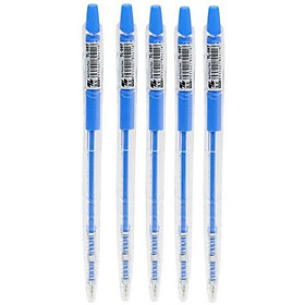 Vỉ 5 Bút Bi TL-097 - Màu Xanh Bút có thiết kế đơn giản, toàn bộ thân bút làm từ nhựa trong, nút bấm bằng nhựa cùng màu với ruột bút. Viết rất trơn, êm,