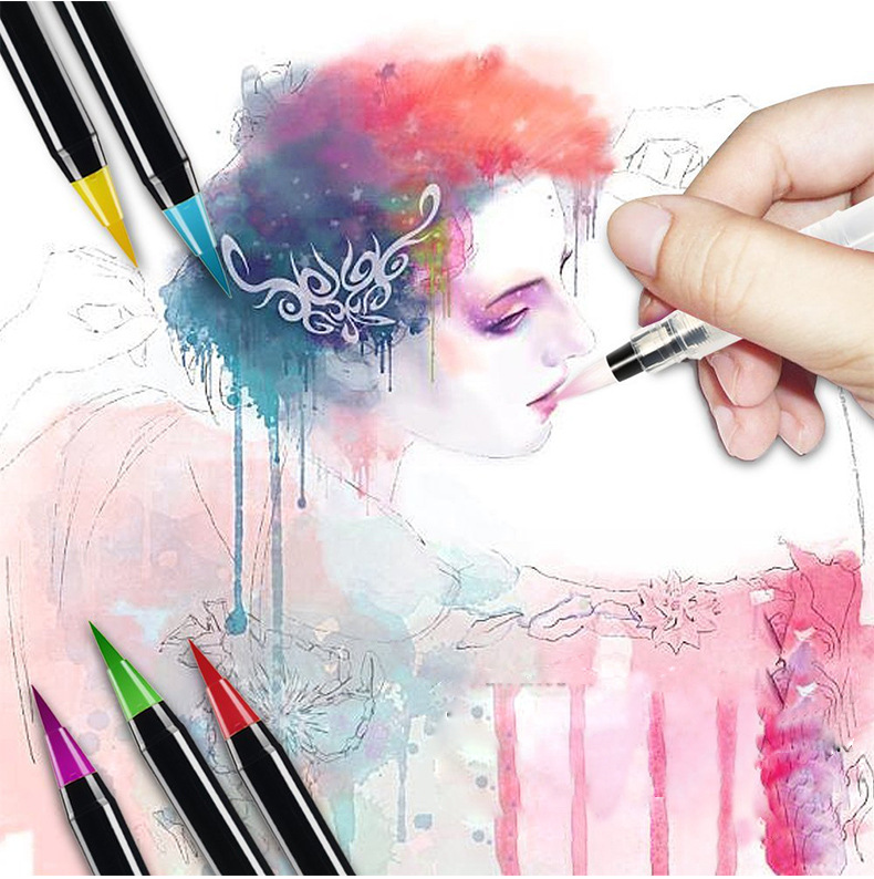 Mua tại TiktokBộ 20 bút lông màu nước cao cấp Water Color Brush Pen - Tặng 1 cọ Water Brush