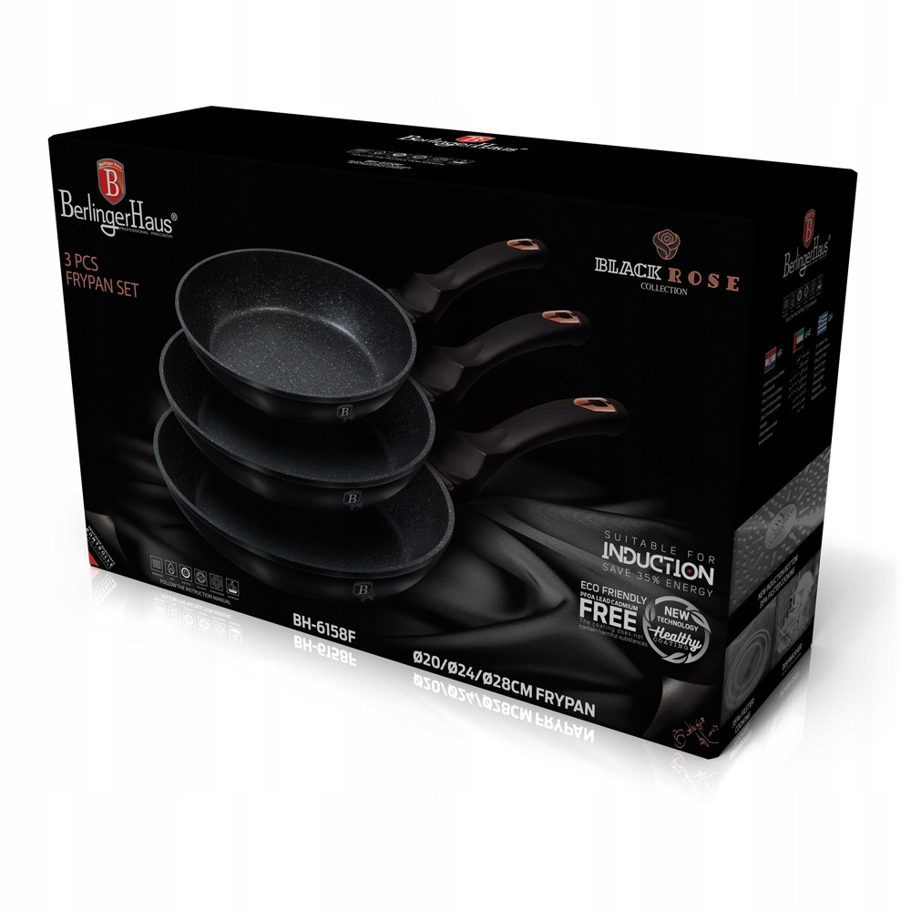 Bộ 3 chảo Berlinger Haus BH/6158F 3pcs Frypan Set 20 - 24 - 28cm chống dính phủ đá màu đen - Black Rose Collection. Phù hợp mọi đối tượng người dùng, GIÁ SIÊU TỐT Bộ
