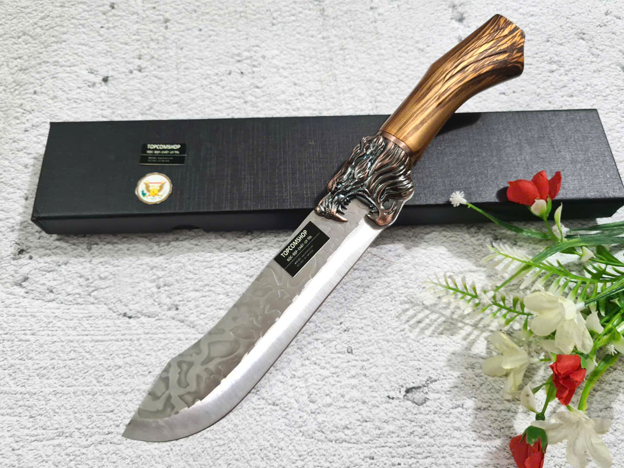 D SỐ 1 : TỔNG DÀI : 29cm, LƯỠI: 14cm,RỘNG : 4.5cm, dày: 3mm, NẶNG : 1.5 lạng, CHẤT liệu lưỡi: 4Cr13MOV (thép 4 crom 13 molypden vanadi).Chất liệu CÁN: nhựa abs xịn . khâu đầu rồng và chuôi bằng thép 4cr13