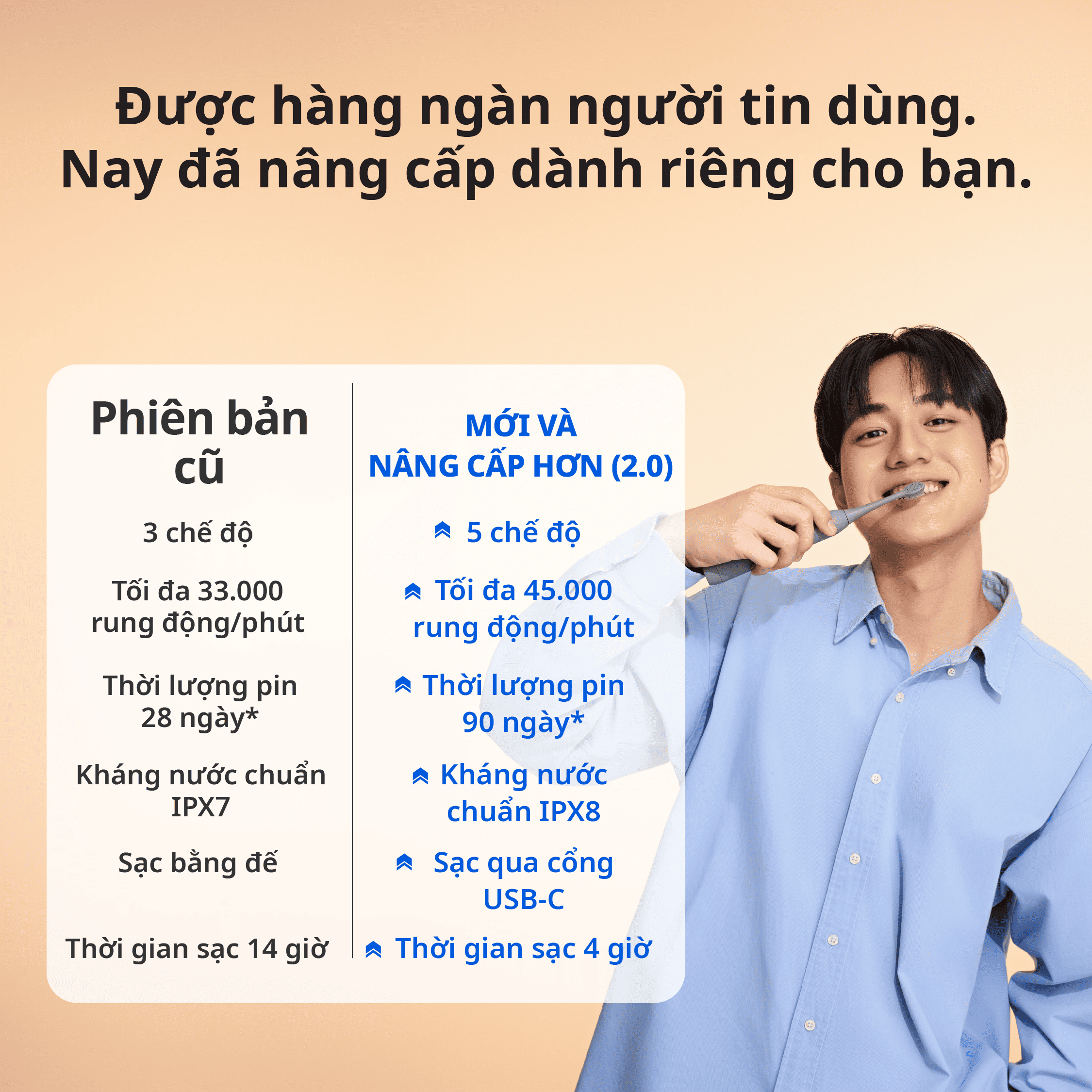 - Loại bỏ 100% sự ố màu - Làm trắng răng thông minh nhờ thiết kế lông chải kim cương và mảng chải trung tâm - Quý khách vui lòng chọn đúng mẫu đầu bàn