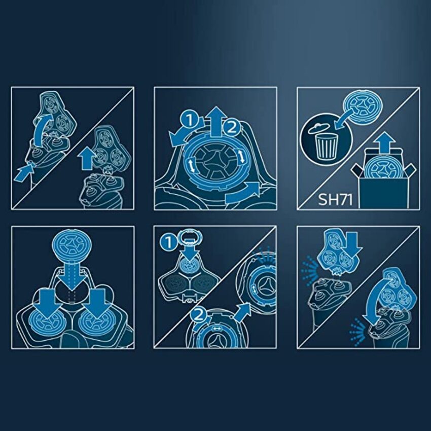 - Đầu thay thế SH71 tương thích với các dòng máy cạo râu Philips Serial 5000 và 7000 mặt vuông mới như: S5110, S5400, S5271, S5580, S7782, S7788, S8050, S7888, S7735, S7732, S7731, S5579, S5587, S5599, S5588...