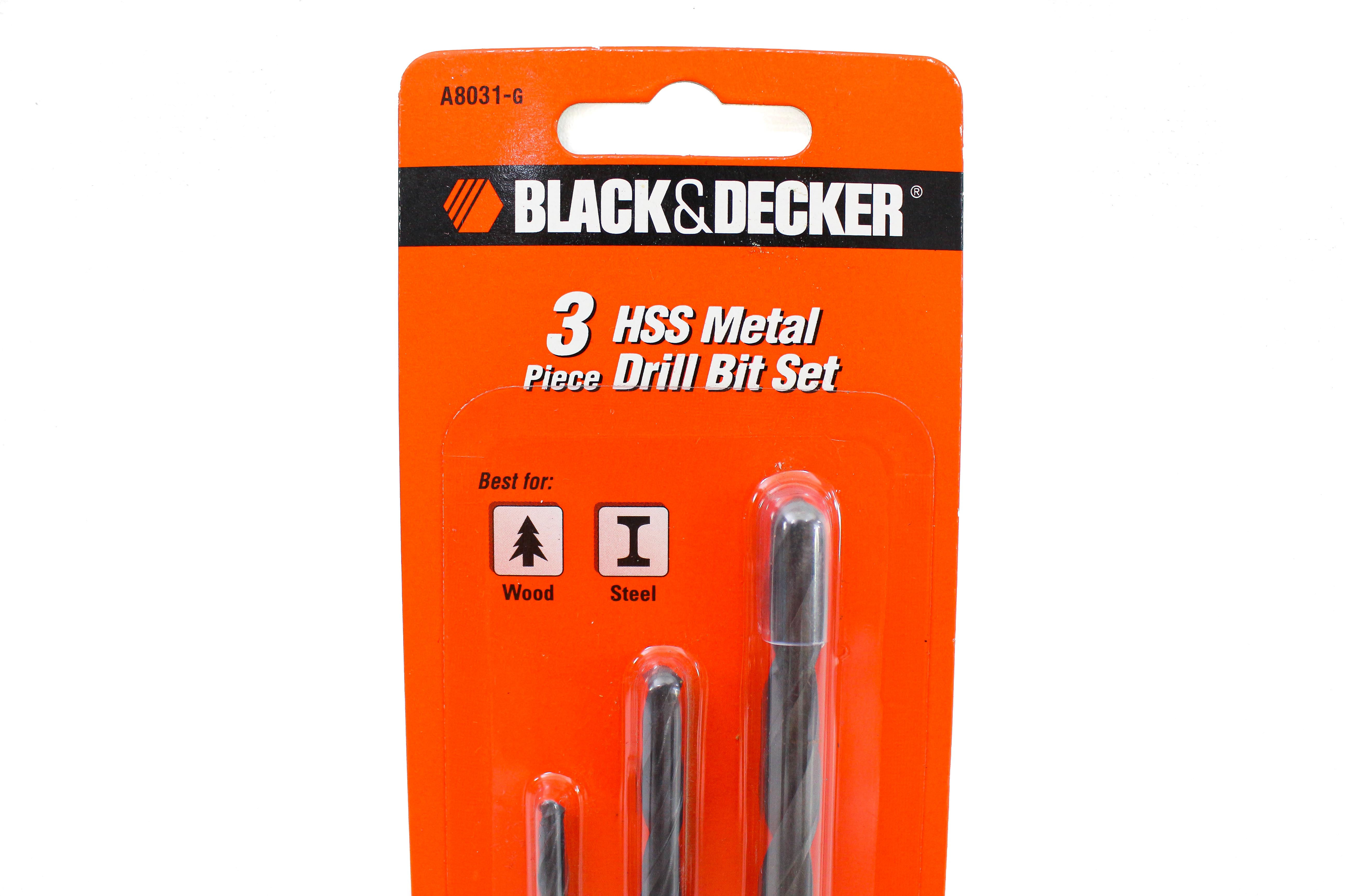 Bộ 3 Mũi khoan sắt HSS A8031GChất liệu siêu cứng, siêu bềnBộ mũi khoan sắt, gỗ 3 chi tiết Black Decker A8031G được làm bằng hợp kim thép có độ bền cơ học cao cho bạn yên tâm sử dụng trong thời gian dà...