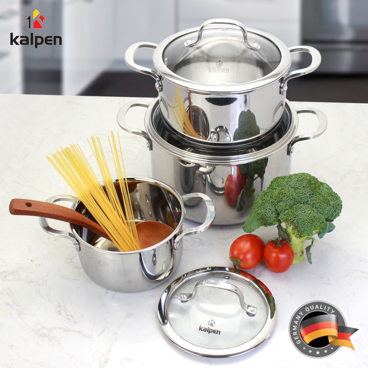 ✨Bộ 3 Nồi Inox 3 Lớp Liền Khối Kalpen Kazler KZ1 Size 16,20,24cm Chuẩn Đức