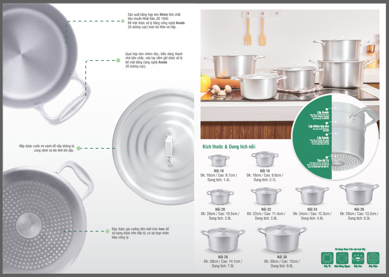Nồi đặc biệt quai tròn xi bóng là sản phẩm được sản xuất từ chất liệu hợp kim nhôm tinh chất có khả năng bắt nhiệt nhanh và truyền tản nhiệt đều, giúp nấu thực phẩm nhanh chín, tiết kiệm nhiên liệu và thời gian làm bếp.