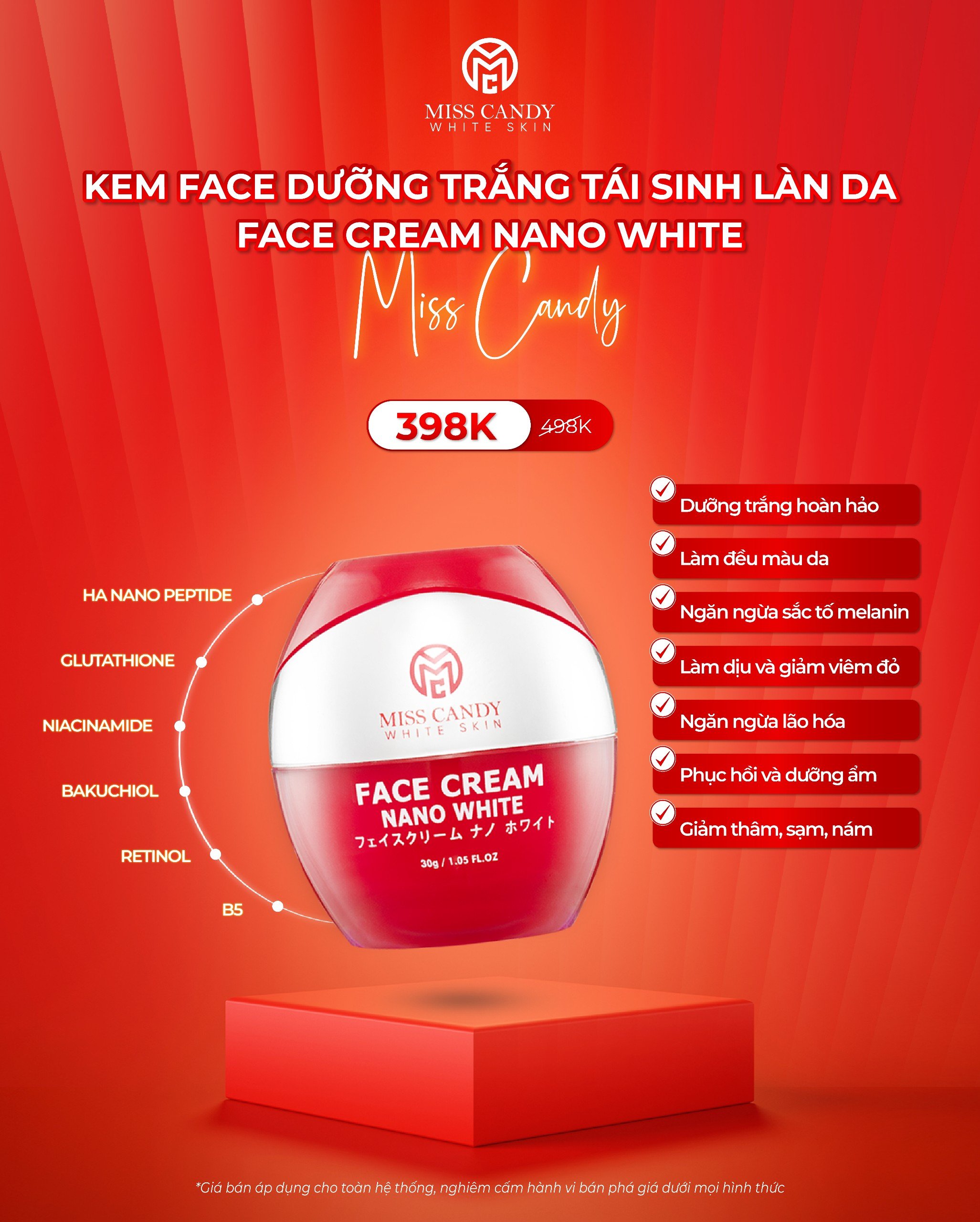 - Kem Dưỡng Trắng Da Face Nano Miss Candy 30g: