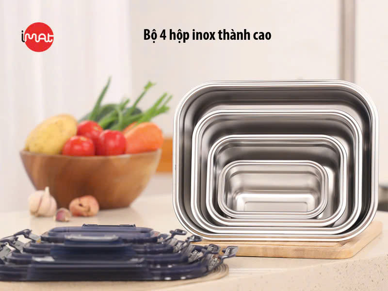 Inox 304 an toàn, siêu nhẹ, sử dụng đa năng với tổng dung tích 5.92 lít, Bộ 4 Hộp Inox cao cấp là giải pháp lưu trữ thực phẩm hiệu quả cho mọi gia đình.