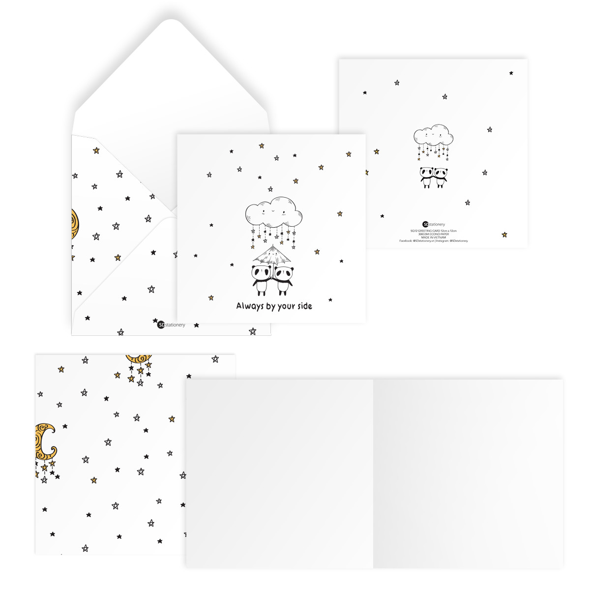 ✨Bộ 4 thiệp vuông 12cm SDstationery PANDA gấu trúc mừng sinh nhật, tình yêu, tình bạn, bố mẹ