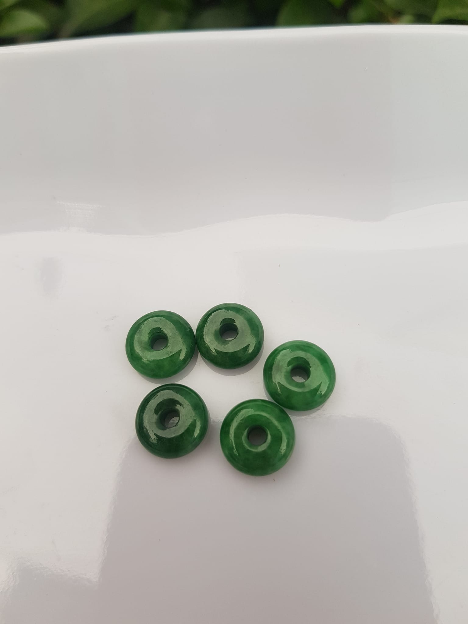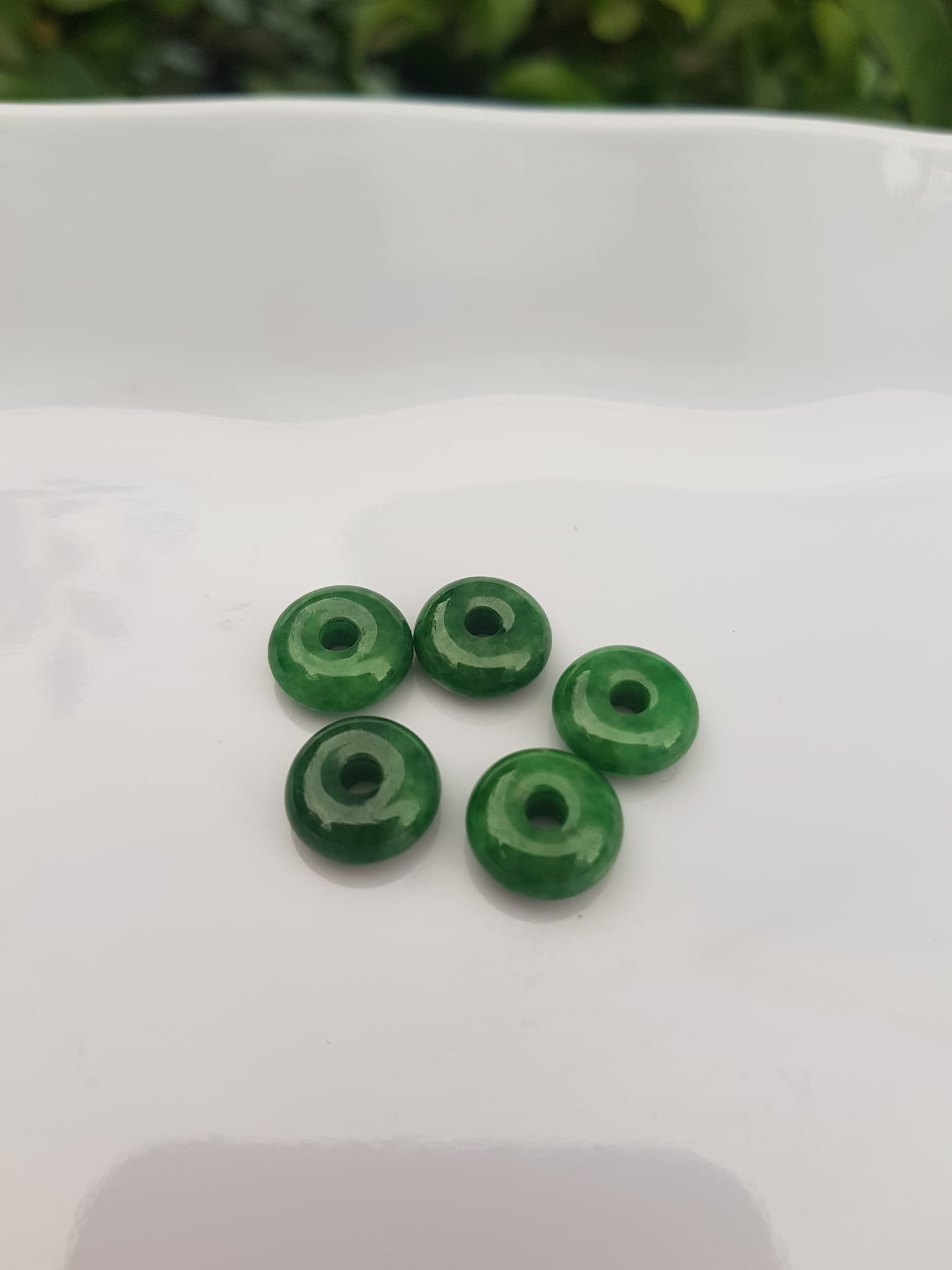 ✨Bộ 5 đồng tiền đá cẩm thạch tự nhiên xanh ngọc đậm đều đẹp Nữ Phối vòng tay,mặt dây chuyền vàng đeo cực kỳ xinh xắn ạ Size hạt 9mm x dầy 3,8mm x lỗ ở giữa đk 2mm mệnh Thủy Mộc Hỏa ạ