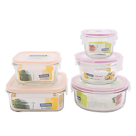 0827788333 Bộ 5 hộp thuỷ tinh cường lực Glasslock GL1880 - Made in Korea