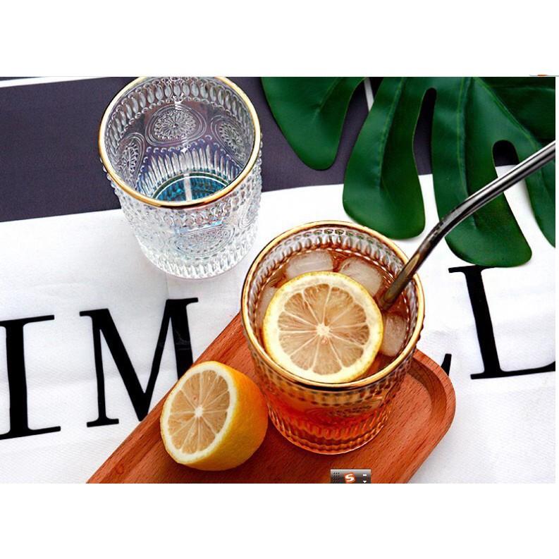 Bộ 6 cốc thủy tinh chịu nhiệt, họa tiết nổi, viền vàng
