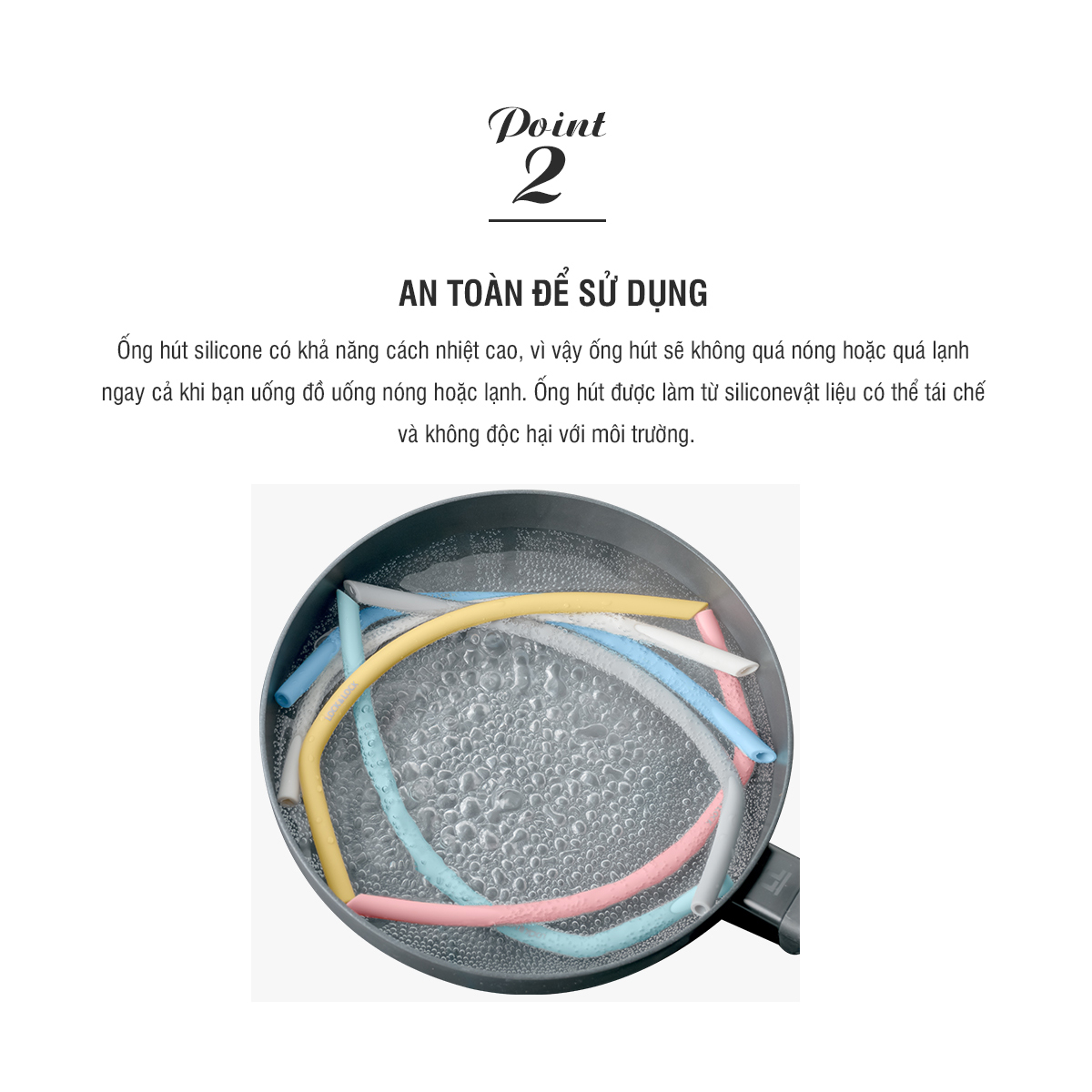 Ống hút được làm từ silicone_vật liệu có thể tái chế và không độc hại với môi trường.