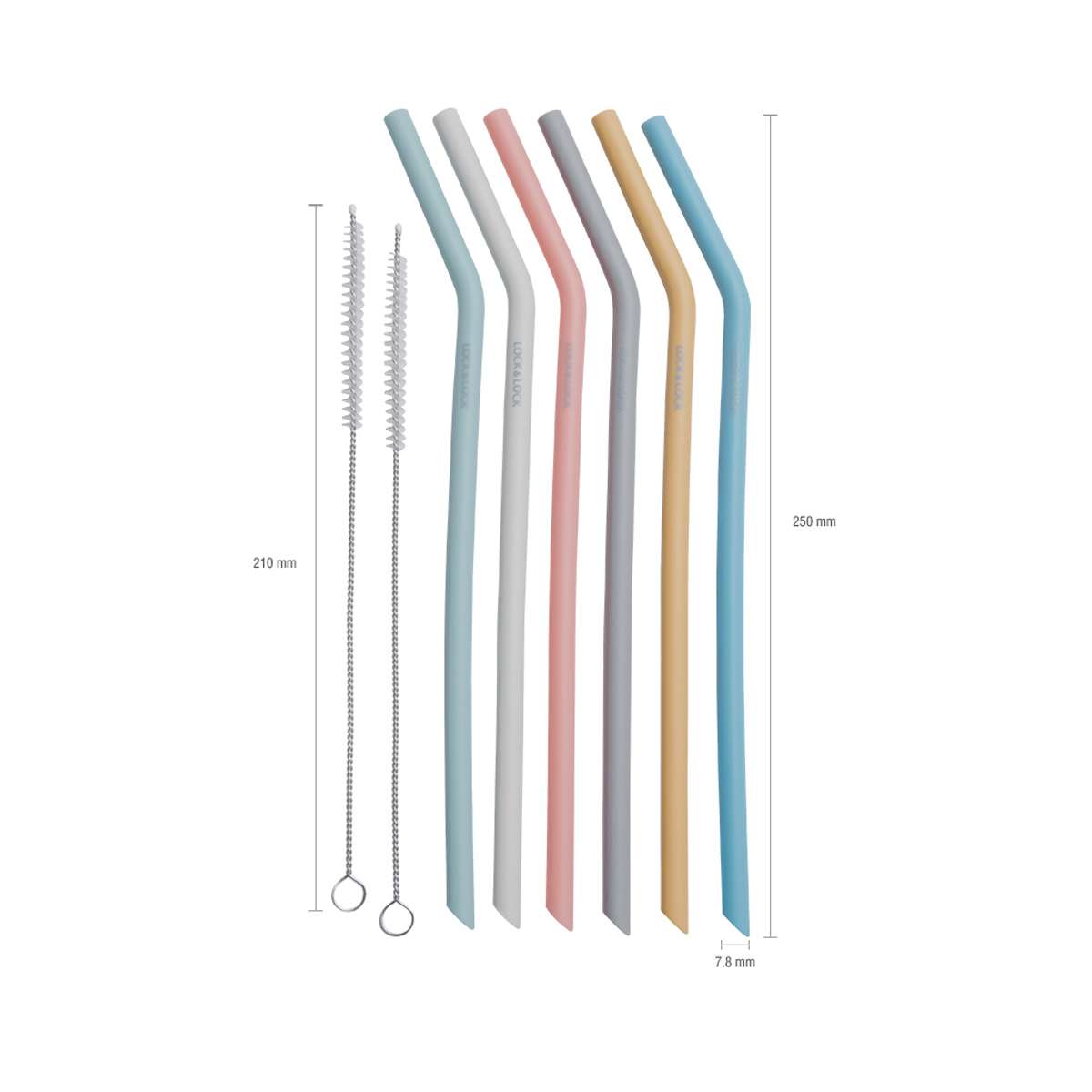 Bộ 6 Ống Hút Silicone Có Thể Tái Sử Dụng Kèm 2 Cọ Rửa Lock&Lock TLL080 ( 250 x 78 mm) được làm từ chất liệu silicone mềm mại không những an toàn với