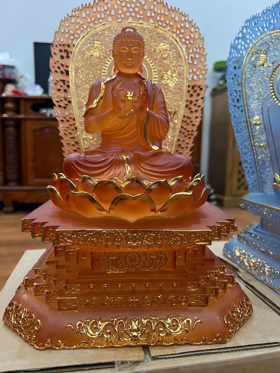 Tượng Phật Quan Âm Đá Lưu Ly Vàng Mới để trong xe hơi hoặc để bàn cao 12cm đk 7cm đế 5cm Mệnh Kim mệnh Thổ mệnh Thủy ạ *** Tượng Phật Quan Âm Đá