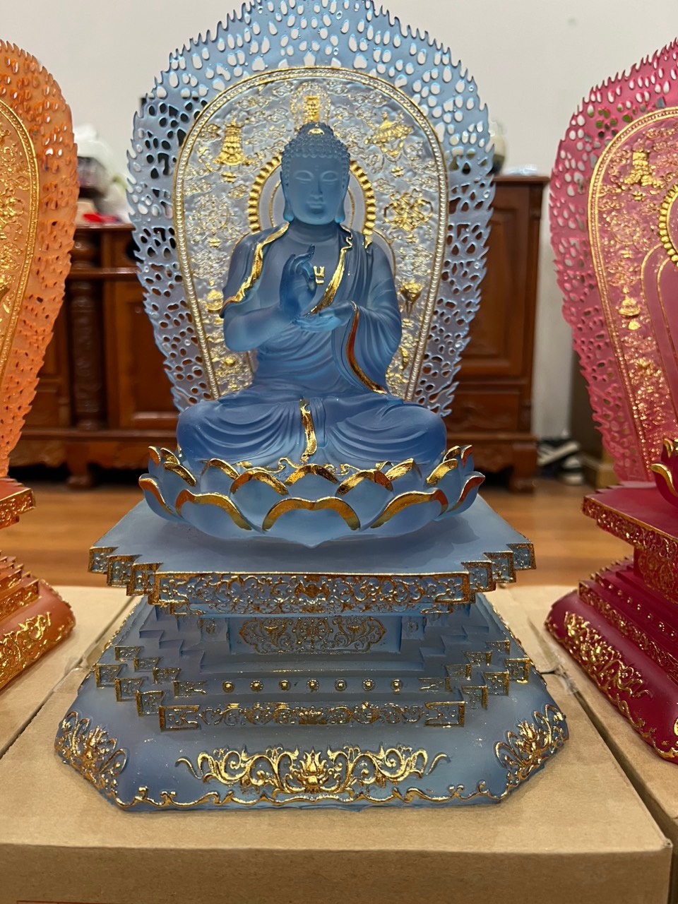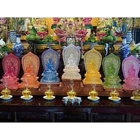 Bộ 7 tượng phật dược sư đá lưu ly đủ màu sắc: là thầy thuốc chữa bệnh, ánh sáng như ngọc lưu ly. Chính vì là thầy thuốc, Dược Sư Như Lai có thể chữa lành bách bệnh trên thế gian này, kể cả những bệnh khởi sinh do phiền não và cứu độ họ thoát khỏi sinh tử khổ đau.