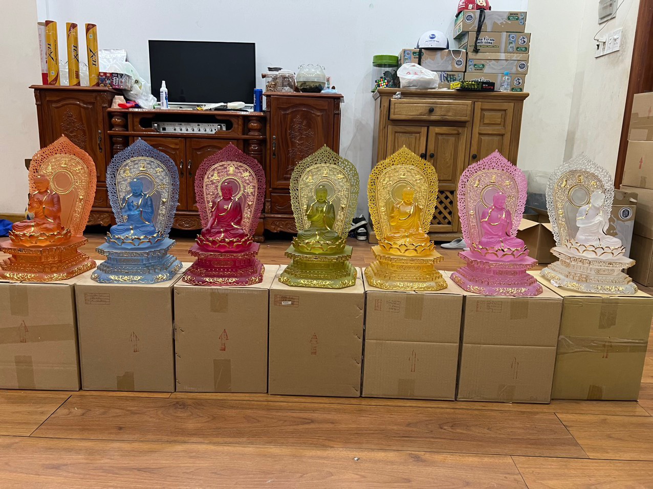 Bộ 7 tượng phật dược sư đá lưu ly đủ màu sắc: là thầy thuốc chữa bệnh, ánh sáng như ngọc lưu ly. Chính vì là thầy thuốc, Dược Sư Như Lai có thể chữa lành bách bệnh trên thế gian này, kể cả những bệnh khởi sinh do phiền não và cứu độ họ thoát khỏi sinh tử khổ đau.