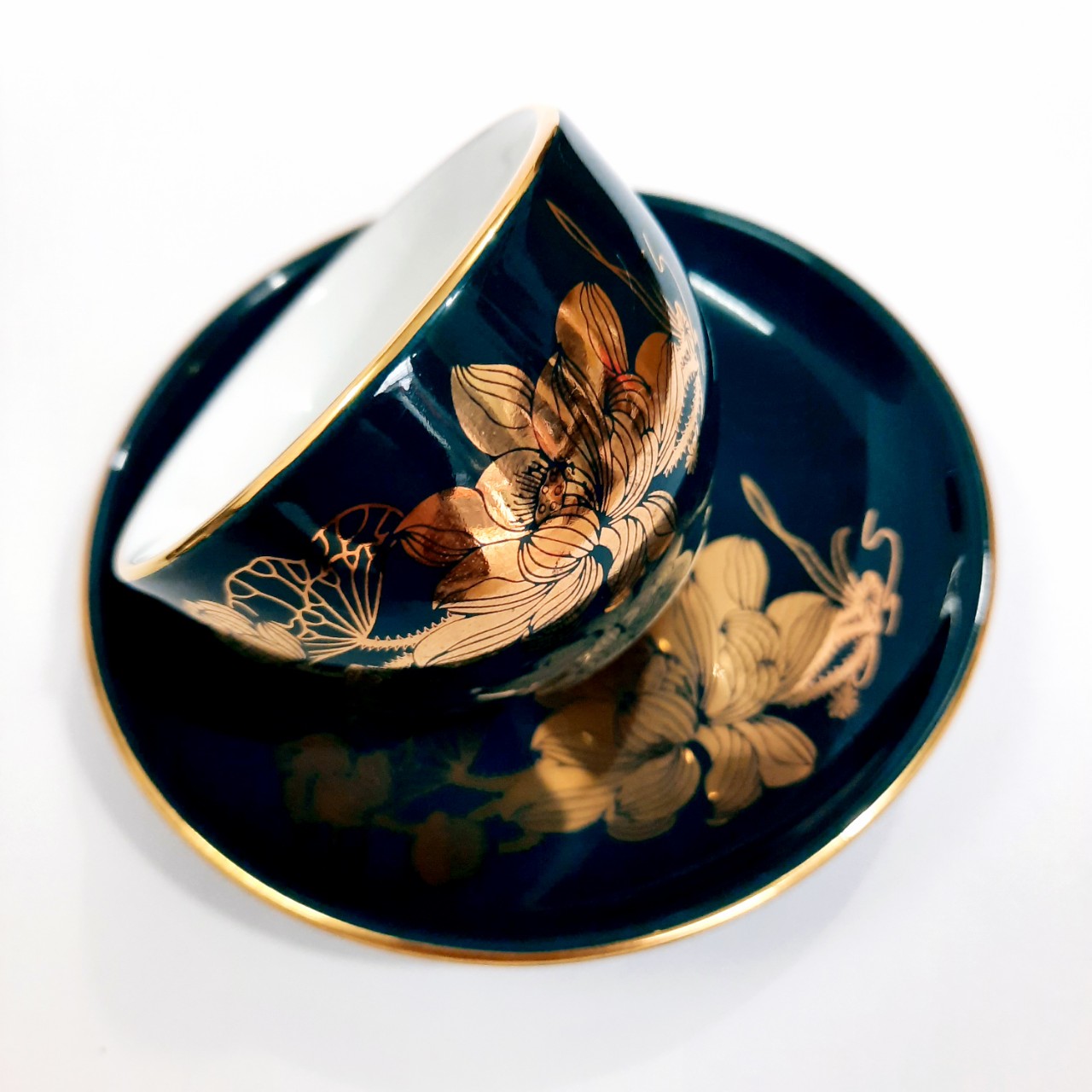 BỘ ẤM CHÉN VẼ VÀNG 24K VỚI HỌA TIẾT HOA SEN