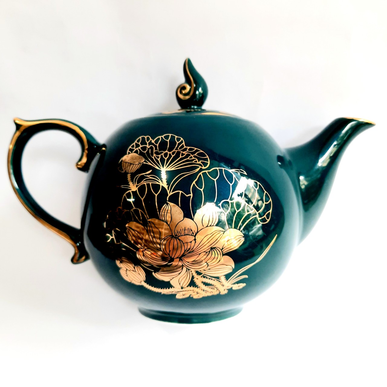 ✨Bộ ấm chén Bát Tràng cao cấp phú quý Mallard màu xanh Arctic họa tiết hoa sen vẽ vàng 24k