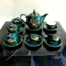 Bộ ấm chén Bát Tràng phú quý men xanh lục ngọc bảo họa tiết Phúc - Lộc - Thọ vẽ vàng 24k - Là sản phẩm hội tụ được nét tinh xảo của bàn tay