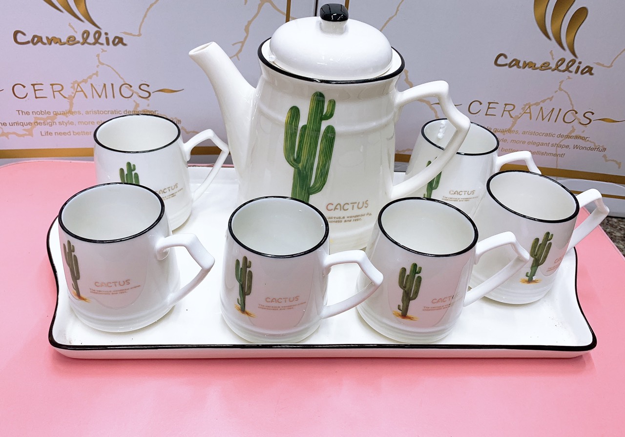 Bộ ấm chén kèm khay sứ pha trà cà phê siêu sang cho ngày Tết- Bộ cốc chén pha trà cà phê kèm khay bằng sứ