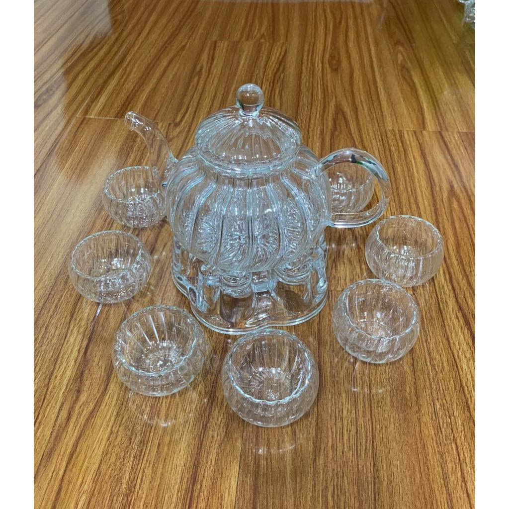 ✨Bộ ấm chén pha trà thủy tinh dáng bí 600ml kèm đế châm nến