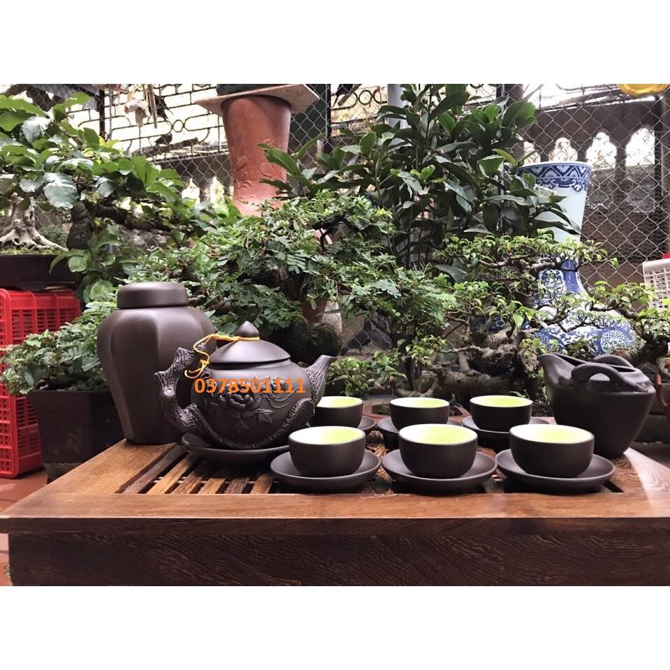 Bộ ấm trà gốm đắp tay khay chữ nhật 29 x 19cm - chuẩn loại 1 Bát Tràng + Chất liệu đất tử sa cao cấp + Sản xuất tại Bát Tràng + Bộ gồm