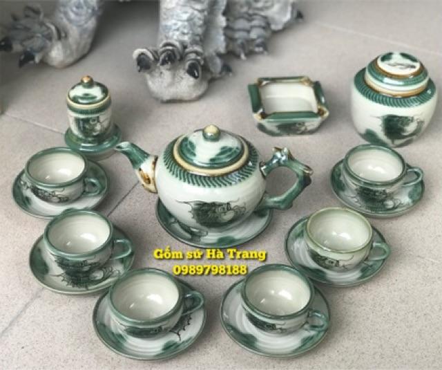 Ấm chén Bát Tràng cao cấp men xanh viền chỉ vàng kim Dung tích 450 ml Giá 550k