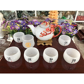 Chất liệu: Đá bạch ngọc Bao gồm: 01 ấm; 06 chén, 1 tách đựng nước thừa và hộp đựng cao cấp Kích thước : Dài 36 cm x 25 cm x 13 cm ( Bao