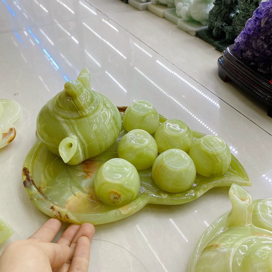 ✨Bộ ấm trà với dĩa kiểu chếc lá trầu đá ngọc Onyx