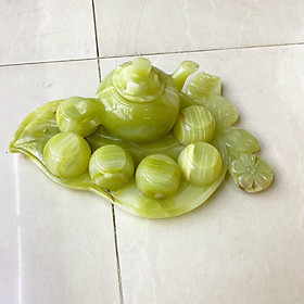 Chất liệu: Đá ngọc Serpentine Bộ sản phẩm gồm: 7 dĩa, 6 ly và 1 ấm trà Dùng để uống trà hoặc làm quà biếu tặ