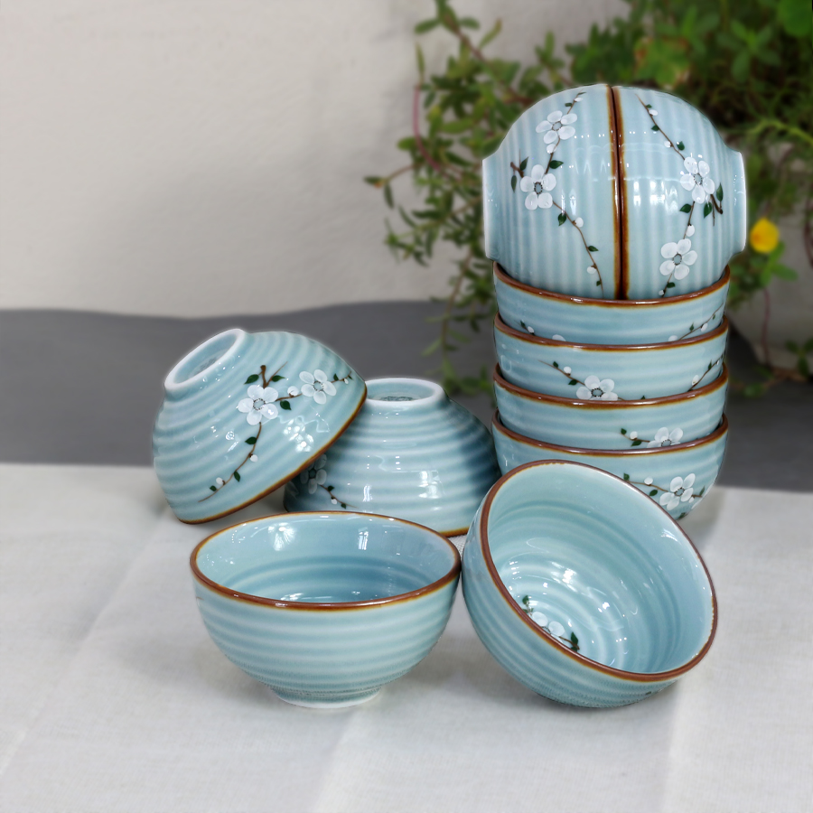 ✨Bộ bát ăn cơm men Lam Ngọc vẽ hoa Anh Đào cao cấp gốm sứ Bảo Khánh Bát Tràng