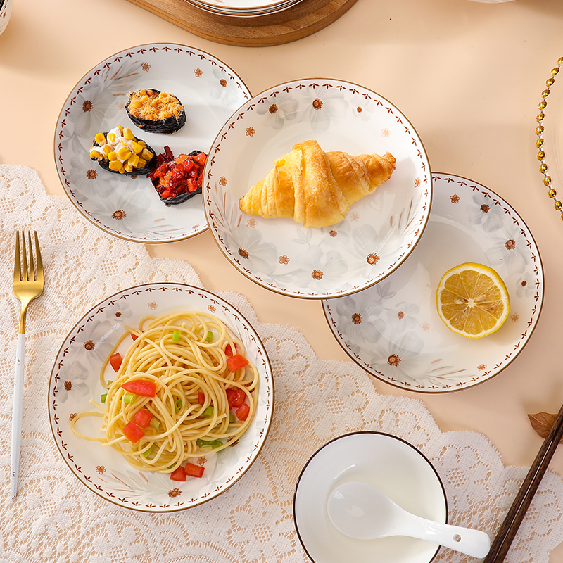 Hài hòa và tinh tế, tạo đặc trưng thẩm mỹ với kiểu dáng tròn độc đáo, bộ bát đĩa hoa mặt trời họa tiết hoa sen được đánh giá cao về mặt thiết kế, là