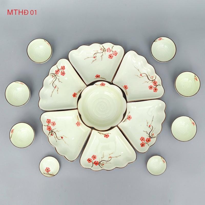 Bộ đồ ăn men lam vẽ hoa đào Gốm sứ Bát Tràng cao cấp không chì Bộ đồ ăn gồm 15 món như hình 6 bát cơm 1 bát mắm 1 đĩa muối 1 đĩa