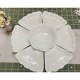 Set đĩa hoa mặt trời gốm sứ Bát Tràng cao cấp men trắng sang chảnh 1 set gồm : 1 bát tô , 6 đĩa cánh hoa , 6 bát cơm, 1 bát mắm ,