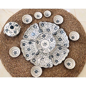 Bộ bát đĩa hoa sen chàm dùng cho bữa cơm gia đình