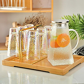 ✨BỘ BÌNH ĐỰNG NƯỚC UỐNG THỦY TINH 6 CỐC LOE CAO CHỊU NHIỆT CAO CẤP KÈM KHAY VÀ GIÁ ÚP ( KHAY VÀ GIÁ GIAO NGẪU NHIÊN ) - VD77