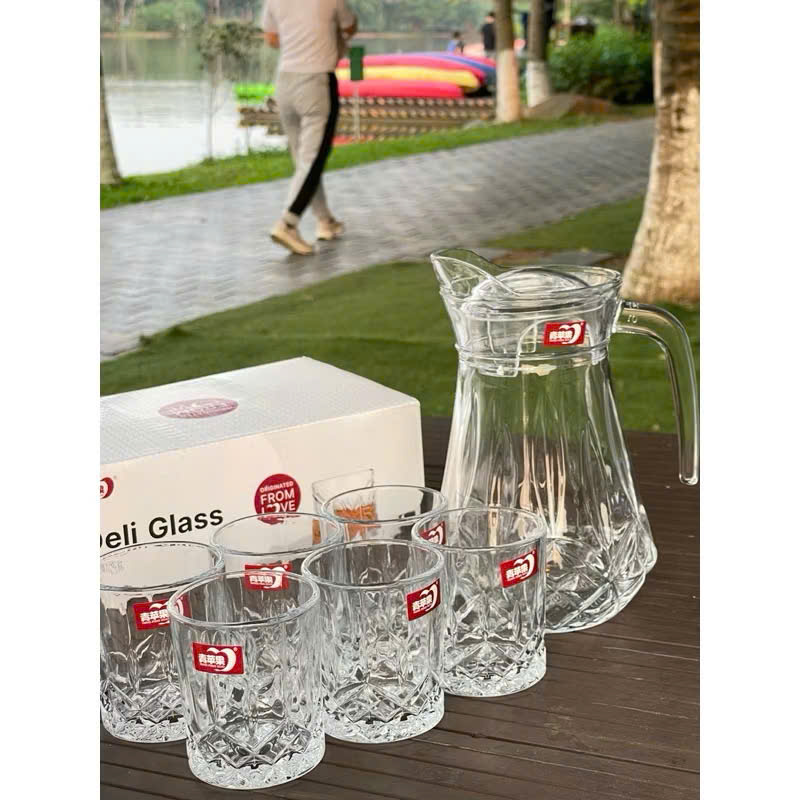 Set Bộ bình cốc thủy tinh chịu nhiệt ZS015, bình 1800ml+ 6 ly 300ml