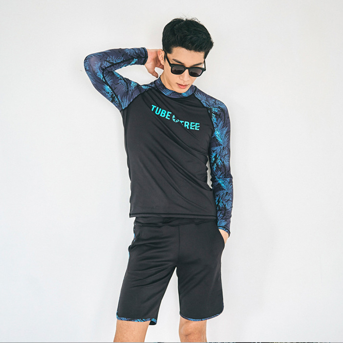 - Đồ bơi tay dài nam chống nắng, phối họa tiết cổ và tay áo rất cá tính & thời trang. - Set đồ gồm: 01 Áo bơi tay dài + 01 Quần sooc đùi