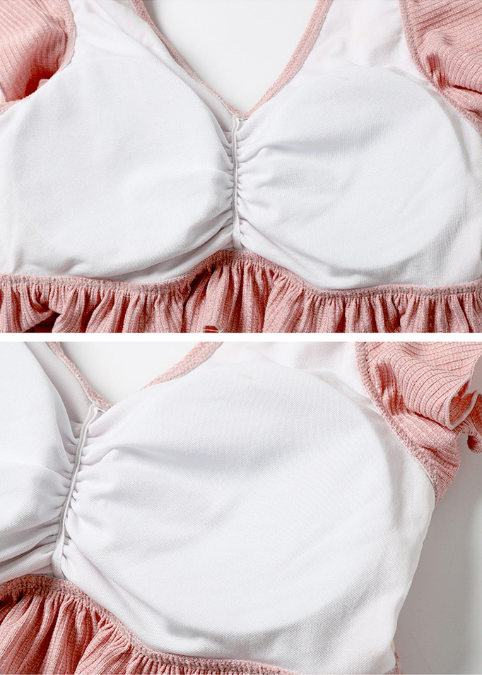 Bikini đồ bơi nữ 3 chi tiết áo gọng kèm mút nâng quần nữ cạp cao kèm chân váy chất liệu thun lạnh.